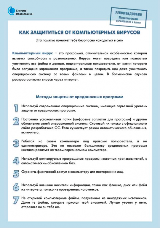 - Используй внешние носители информации, такие как флешка, диск или файл из интернета, только из проверенных источников;
