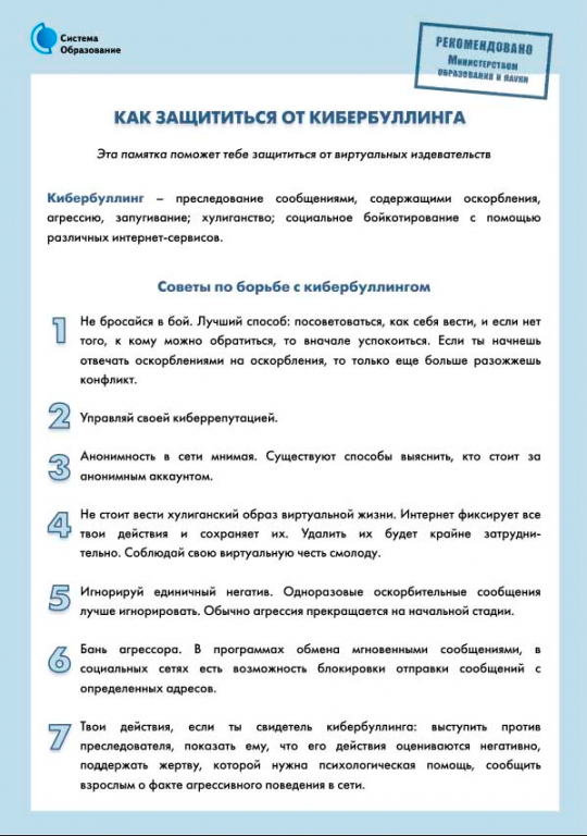 Основные советы по борьбе с кибербуллингом: