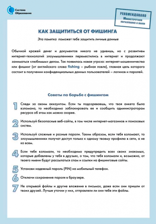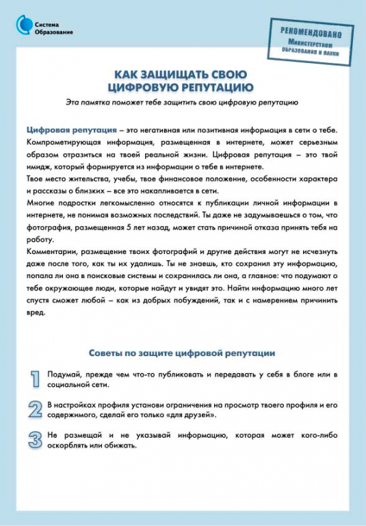 ИНФОРМАЦИОННАЯ ПАМЯТКА ДЛЯ ОБУЧАЮЩИХСЯ ДЛЯ РАЗМЕЩЕНИЯ НА ОФИЦИАЛЬНЫХ ИНТЕРНЕТ-РЕСУРСАХ